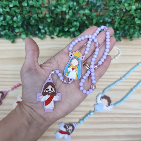 Nosso terço infantil foi feito com carinho em cada detalhe — um presente de luz para os coraçõezinhos mais puros.