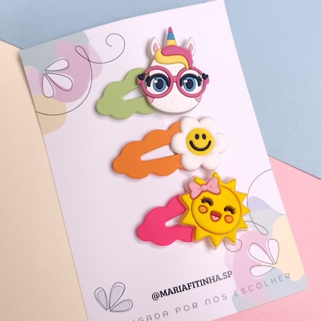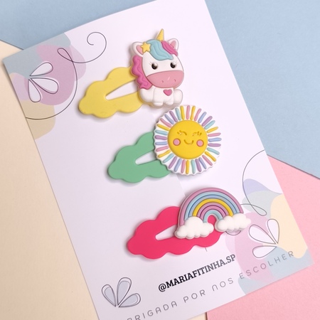 Com capinha de nuvem e apliques de personagens divertidos, eles trazem cor e alegria para o dia das pequenas.